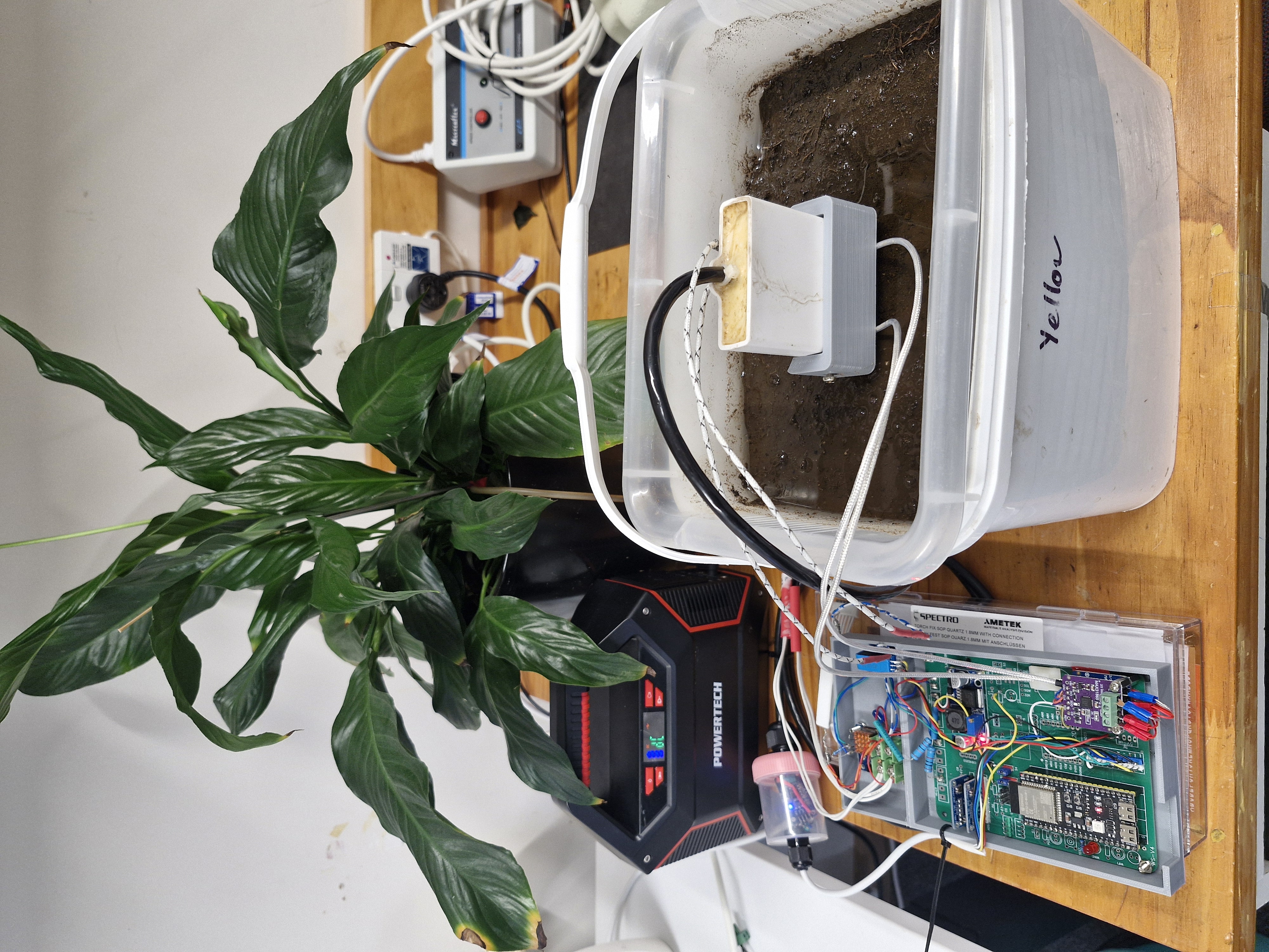 Designed and built a custom heater assembly piggybacked onto a CS655 TDR sensor. ESP32-S3 microcontroller with WiFi-based real-time data acquisition. Multiple design iterations.